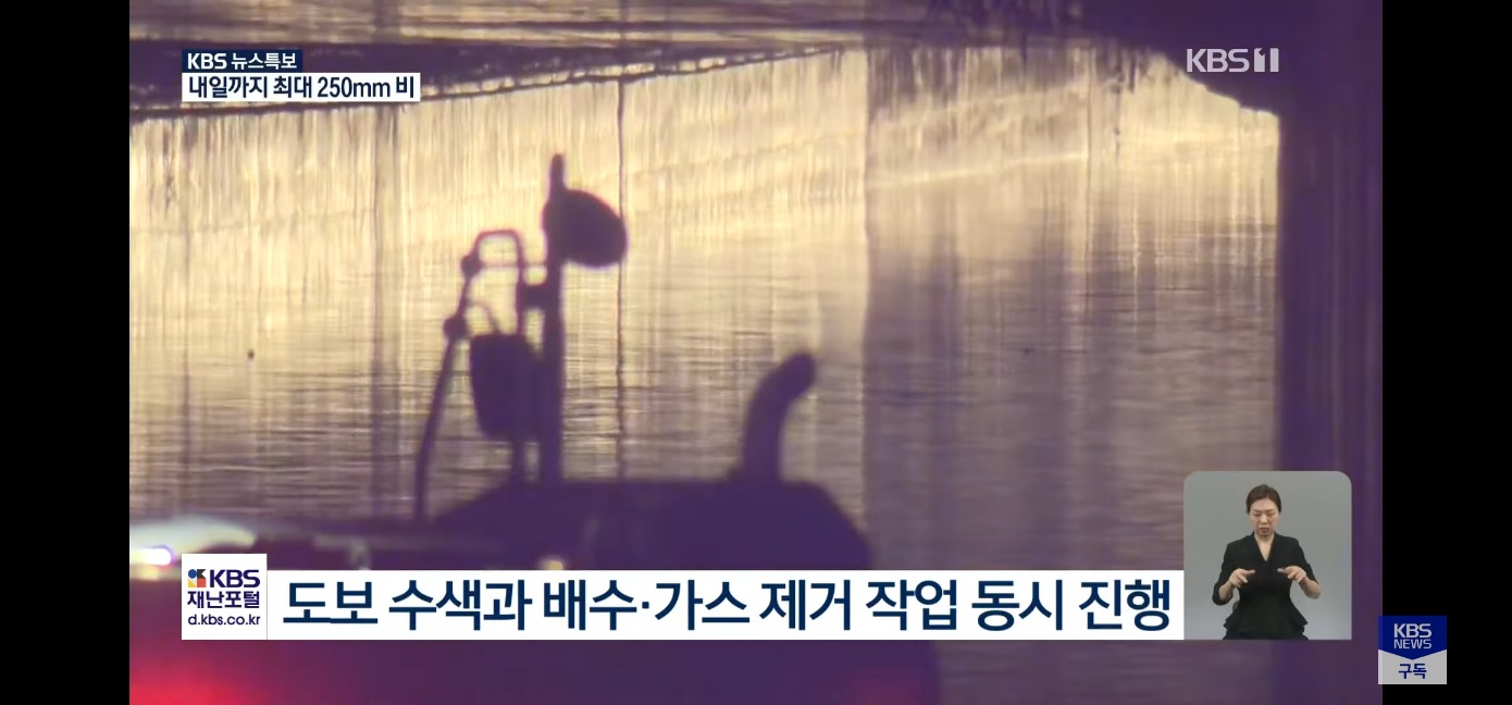 지하차도에 물이 어느정도 빠지면서 현재 도보수색도 이루어지고 있으나 지하차도 중앙에 들어찬 가스와 진흙으로 인해 속도를 내지 못하고 있습니다.